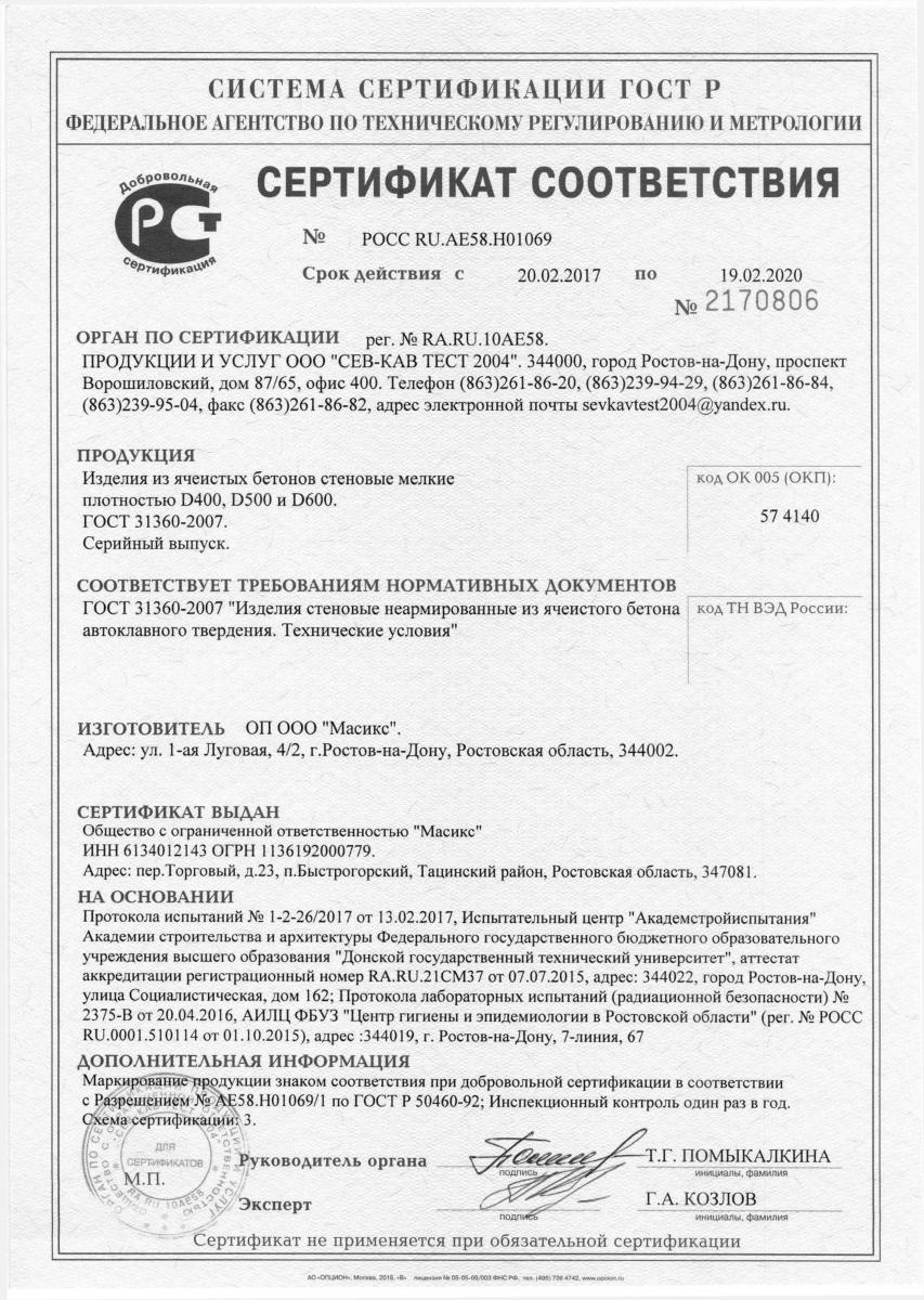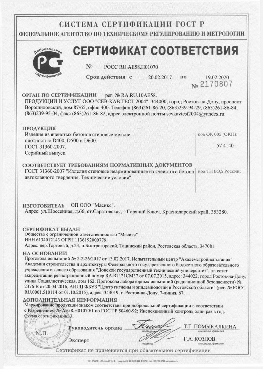 Газобетон Masix D600 обладает высокой морозостойкостью, что позволяет использовать его в регионах с суровыми климатическими условиями.